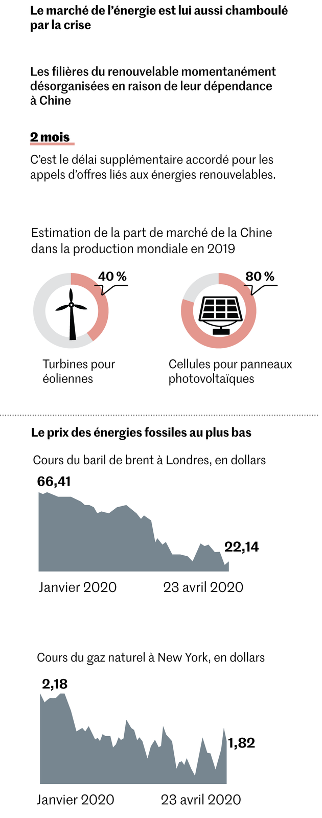 Surtout, cette diminution risque de n’être que temporaire. « Les plans de relance qui sont en préparation sont d’une ampleur qui n’arrive qu’une fois par siècle, au regard des montants mobilisés. Cela va structurer l’économie et donner forme au monde dans lequel nous allons vivre »,prévient Fatih Birol, directeur exécutif de l’Agence internationale de l’énergie (AIE), qui rappelle qu’après la crise de 2008 les émissions de CO2 étaient reparties à la hausse de manière spectaculaire. Le risque est d’autant plus grand aujourd’hui que cette crise sanitaire et économique s’accompagne d’une baisse spectaculaire des prix du pétrole, qui rendra mécaniquement les alternatives moins compétitives.