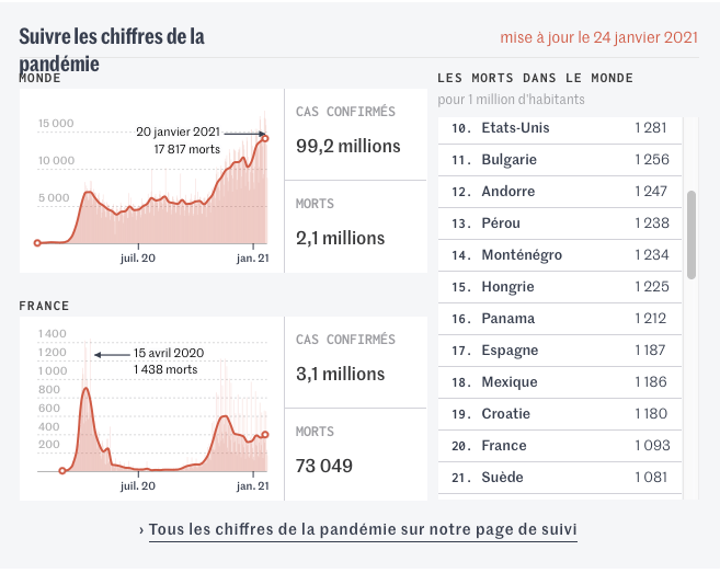 Suivre les chiffres de la pandémiemise à jour le 24 janvier 2021