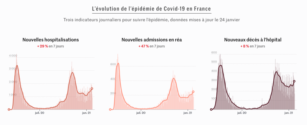 En France augmentation progressive des hospitalisations et décès malgré le couvre-feu