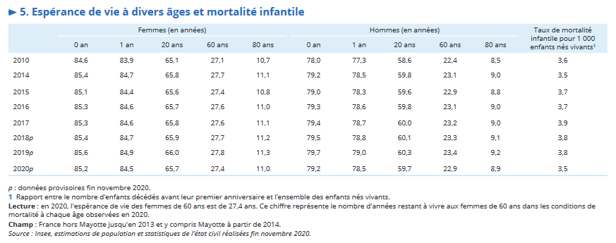 Et d’indiquer également que l’espérance de vie était en recul l’an dernier, à la naissance et à tous les âges de la vie :
