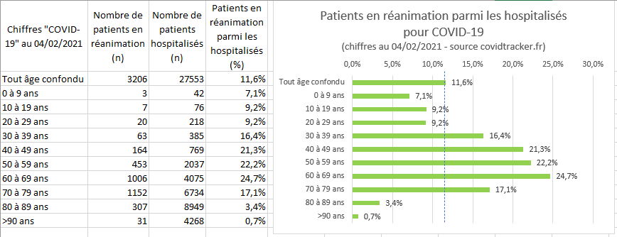 de patients en réanimation parmi les hospitalisés ne devrait, dans une théorie mathématique pure exclusivement, pas décrocher sur les 3 dernières lignes.