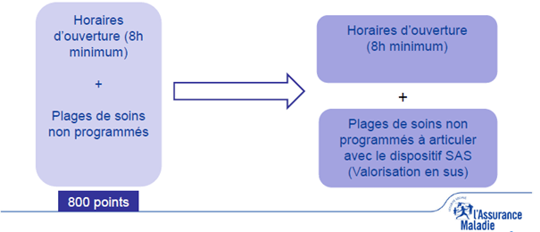 L’ »accessibilité des MSP » étant un indicateur socle et un pré-requis conditionnant le déclenchement de la rémunération, les MSP doivent proposer des horaires d’ouverture (minimum huit heures par jour) et une organisation des professionnels pour recevoir, chaque jour ouvré, toute demande de soins non-programmés. L’Assurance maladie propose de scinder cet indicateur pour mettre en exergue le volet « soins non programmés » qui devra s’articuler, à terme, avec le dispositif du service d’accès aux soins (SAS).