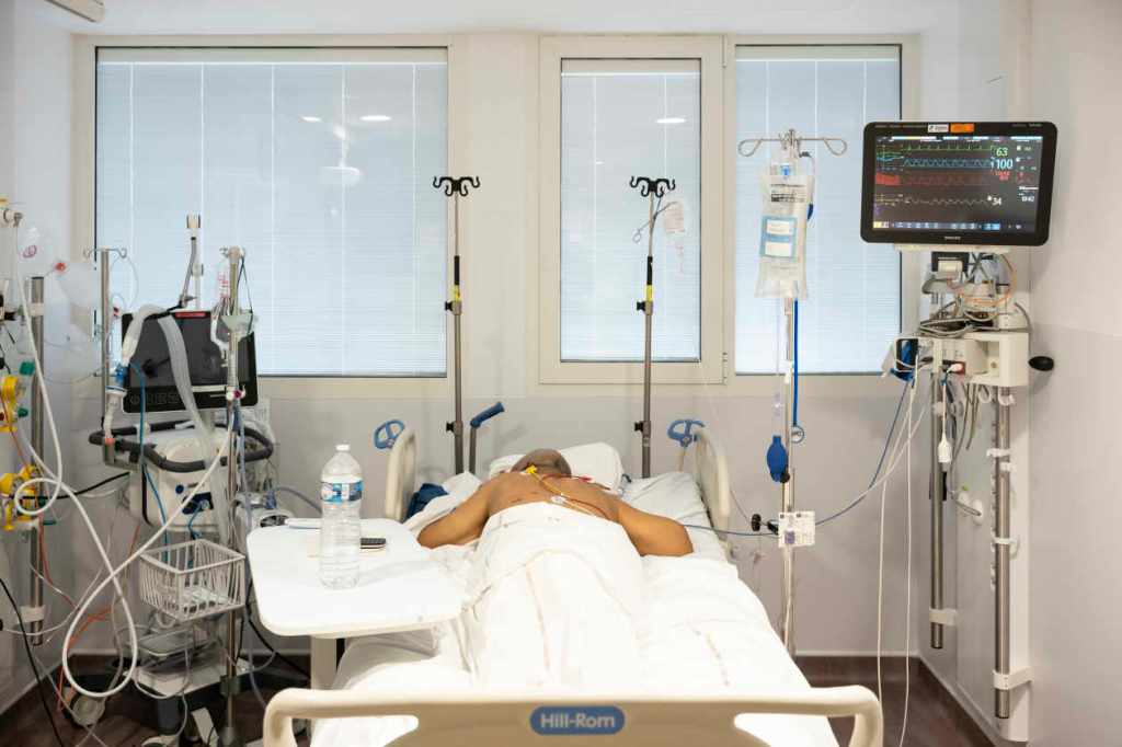 Les malades sont traités dans des chambres individuelles, closes pour la plupart, sauf lorsqu’il s’agit de lits de réanimation aménagés d’urgence dans des unités voisines. Toutes sont dotées d’au moins trois équipements : un scope (appelé « électrocardioscope », c’est un moniteur résumant l’état du patient), une batterie de pousse-seringues (pour programmer l’administration d’un médicament dans le temps) et un respirateur, l’appareil central qui va permettre d’oxygéner le patient.