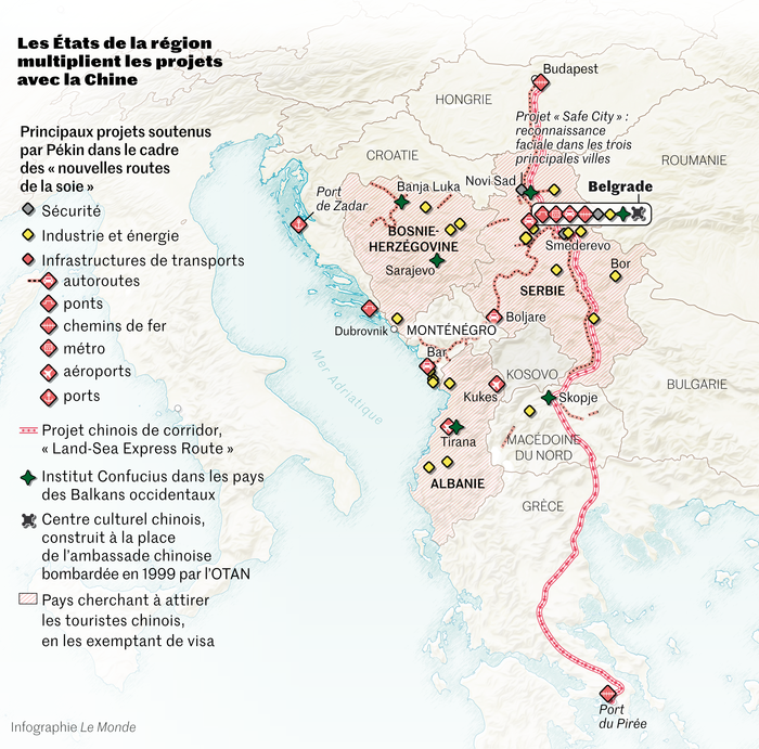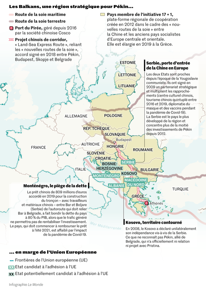 La coopération est aussi sécuritaire. La mairie de Belgrade a déployé plus de 1 000 caméras Huawei à reconnaissance faciale. Mal-aimé dans le reste de l’Europe, le géant chinois des technologies de l’information et de la communication a fait de la capitale serbe son premier exemple de technologie « safe city » sur le Vieux Continent. Dans un pays où la démocratie reste très fragile, une telle alliance avec une technologie intrusive issue d’un pays autoritaire inquiète.Lire aussi l’analyse de Sylvie Kauffmann :« A l’appui de sa stratégie d’influence en Europe, Pékin dispose d’une arme redoutable : les vaccins anti-Covid-19 »