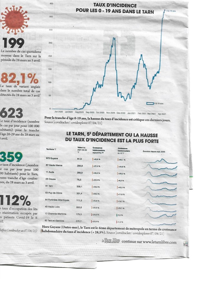 C’est le cas à Coufouleux où le taux d’incidence s’établit à 1158,3 pour 100 000, à Valence d’Albigeois à 864,8 et à Carmaux à 815,3.