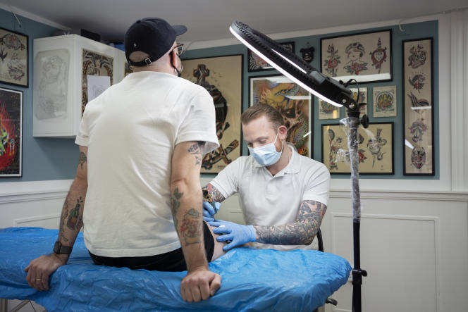 Dans son salon de tatouage, Simon Lester dessine, lui, un dragon sur la cuisse d’un client. Avant de répondre aux questions, il demande à voir un passe. « C’est la loi, soupire-t-il. Autrement je risque d’avoir des ennuis. » L’amende a été fixée à 3 000 couronnes (295 euros) pour les petits commerces, le double en cas de récidive. Il a dû renvoyer des clients, venus sans, mais « ils sont revenus trois quarts d’heure plus tard avec un test ». Lui n’est pas très convaincu de l’efficacité du dispositif, mais « si cela me permet de travailler, alors ça vaut bien les trois secondes et demie que je perds à regarder les téléphones », assure-t-il.