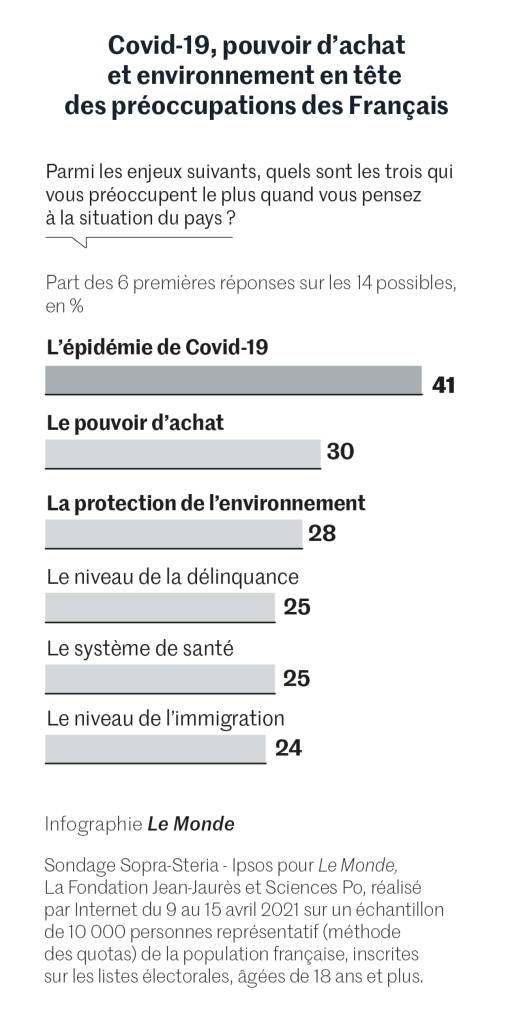 Dans le détail, l’électorat de M. Macron a évolué puisqu’il continue à grignoter à droite (face à Xavier Bertrand, 30 % des soutiens de François Fillon en 2017 disent vouloir voter pour lui, il avait rassemblé 17 % des électeurs de Nicolas Sarkozy il y a quatre ans, selon les estimations d’Ipsos). Et le président de la République, qui a investi à nouveau le thème de la sécurité en début de semaine, devra sans doute marcher sur une ligne de crête tant les préoccupations principales des Français sont diverses (l’épidémie, 41 % ; le pouvoir d’achat, 30 % ; l’environnement, 28 % ; le niveau de la délinquance, 25 %).