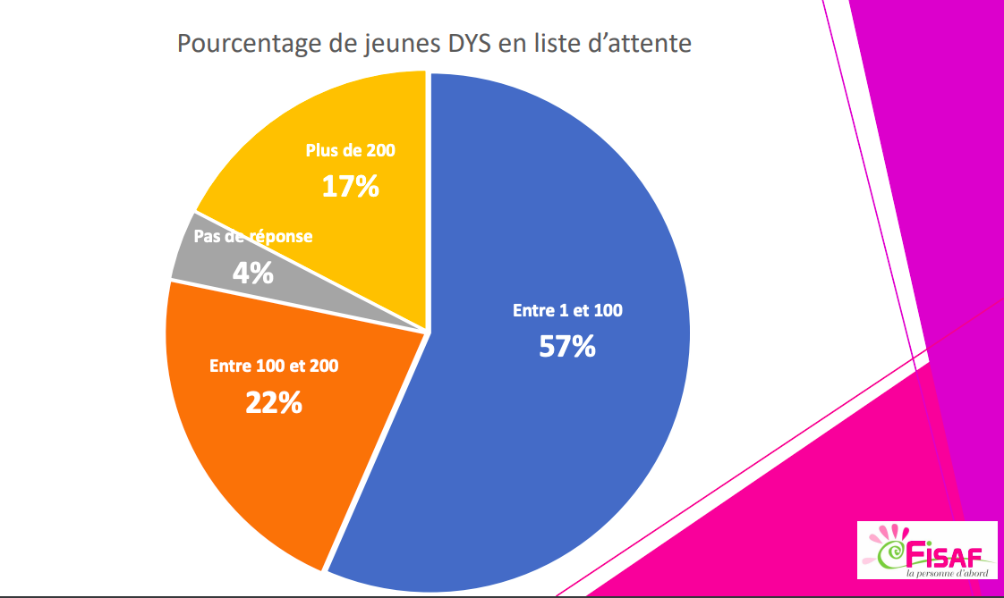 39% des établissements et services ont plus de 100 jeunes Dys sur leur liste d’attente. (Fisaf)