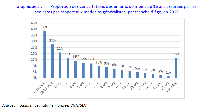 Résultat : les pédiatres « jouent très peu leur rôle de recours » pour les médecins généralistes, et se recentrent sur le suivi préventif des enfants, auquel ils consacrent un tiers de leurs consultations. « Leurs missions apparaissent ainsi en décalage avec leur formation très spécialisée », constate l’Igas. Du fait de la démographie en berne des médecins de PMI et des médecins scolaires, ce sont donc les médecins généralistes qui ont pallié les carences de la pédiatrie, assurant 84% des consultations chez les moins de 16 ans, dont deux tiers concernent des maladies aiguës. Quant au suivi des jeunes patients chroniques, il est « assuré quasi exclusivement par les établissements hospitaliers, en dépit de la formation spécialisée de certains pédiatres », regrette l’Igas.