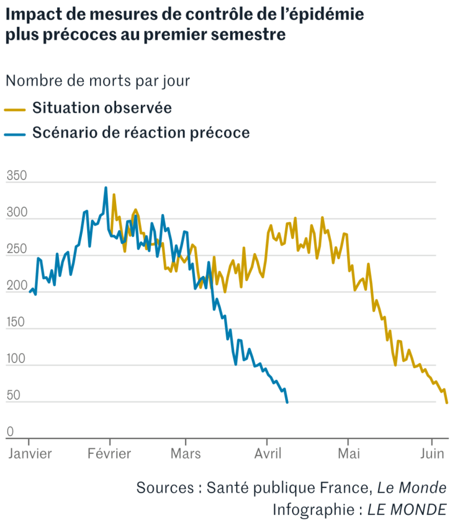 Ce travail, Le Monde l’a réalisé sous le contrôle de l’équipe de l’épidémiologiste Pascal Crépey, à l’Ecole des hautes études en santé publique de Rennes. « Cela donne un ordre de grandeur, tout à fait vraisemblable, même si ce n’est pas un calcul parfaitement rigoureux, observe-t-il. Il suppose qu’en février le confinement aurait été aussi bien respecté qu’en avril. Certains pourront objecter que la population aurait estimé que la situation n’était pas si dramatique et que donc, ces mesures n’étaient pas légitimes. Mais les pays étrangers qui ont confiné plus tôt n’ont pas connu un tel rejet. »