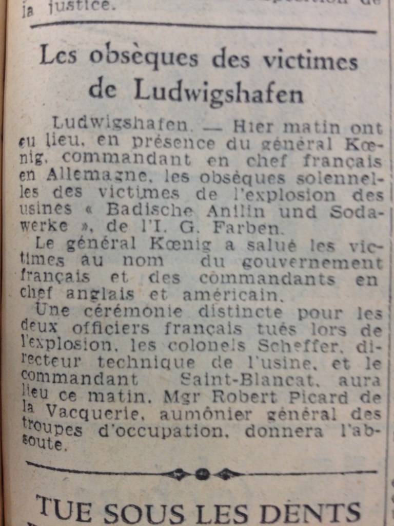 - 28 juillet 1948. Accident d’explosion à BASF. Archives principales de l’État de Coblence