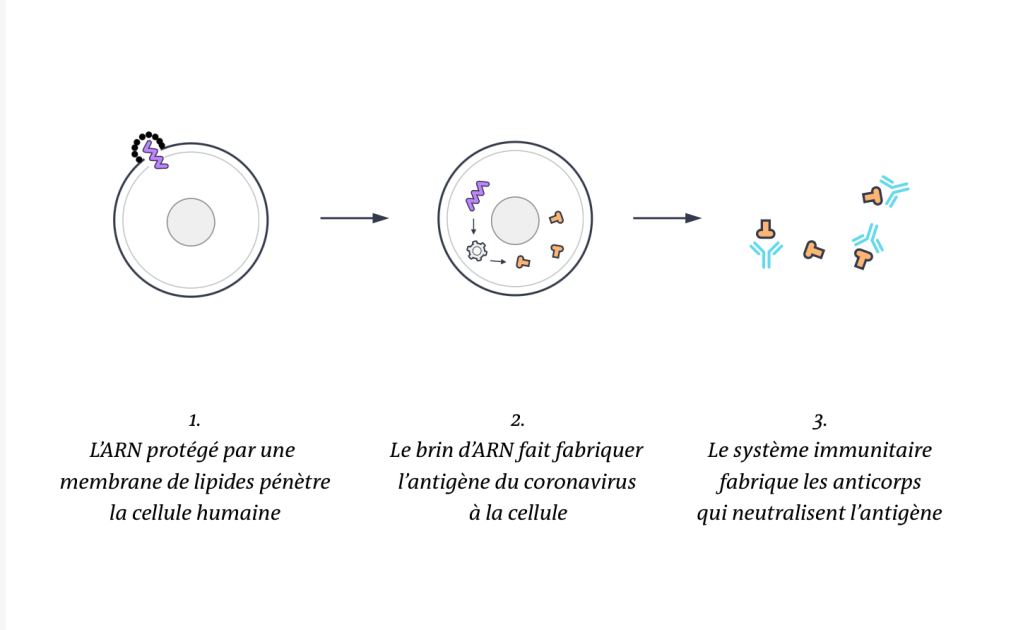 La seconde raison relève davantage de la biologie, puisque les vaccins à ARNm ne contiennent globalement que deux ingrédients relativement simples et fragiles : une capsule de lipides contenant un brin d’ARN messager, la première étant chargée de transporter le second. Or, toutes deux disparaissent très vite sans laisser de trace lorsqu’elles rencontrent une cellule humaine. La capsule de lipide va simplement se dissoudre en libérant l’ARN dans l’intérieur de la cellule. L’ARN étant par nature une molécule instable, elle va elle-même se décomposer en quelques heures, après avoir rempli sa mission. Il n’existe donc aucun mécanisme biologique susceptible d’avoir des répercussions au-delà de ces quelques semaines.