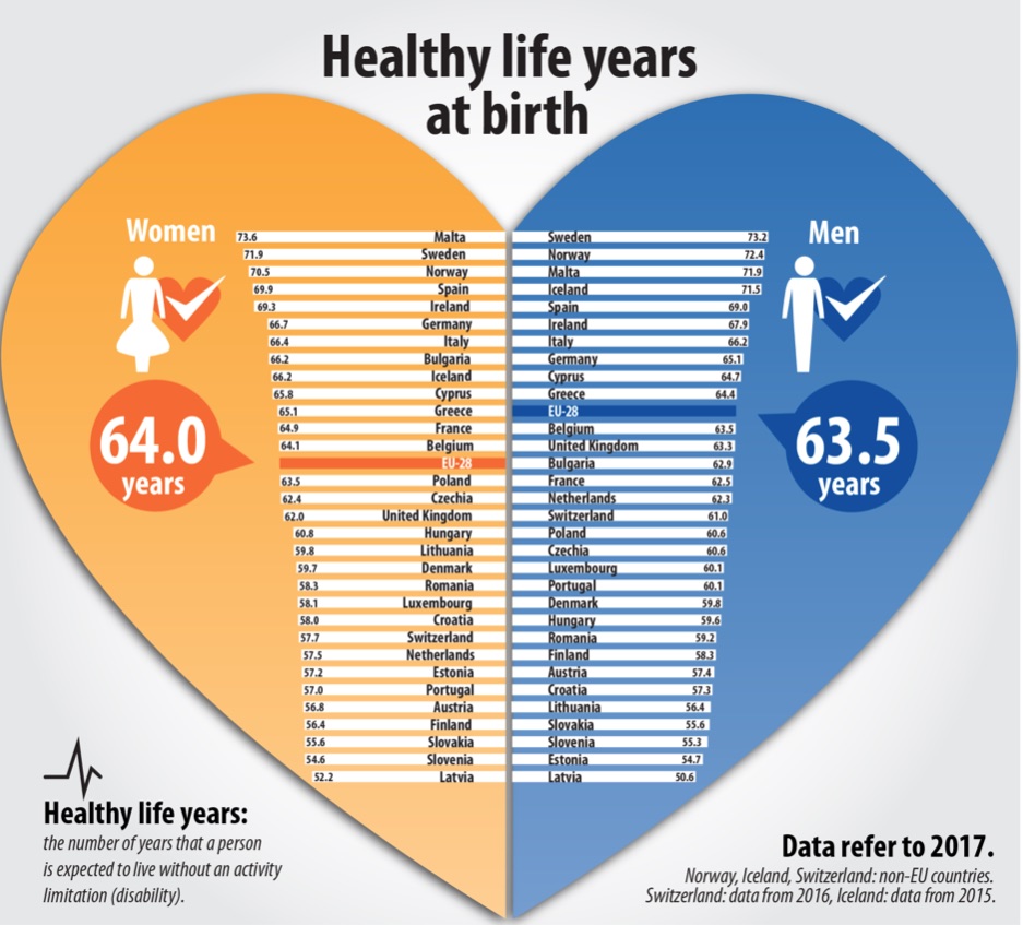 Espérance de vie en bonne santé 2017: la France 14ème pour les hommes