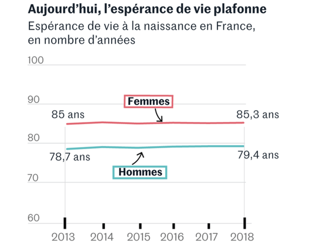 Depuis 10 ans l’ espérance de vie stagne en France et l’espérance de vie en bonne santé ne dépasse pas 64 ans pour les femmes et 63 ans pour les hommes