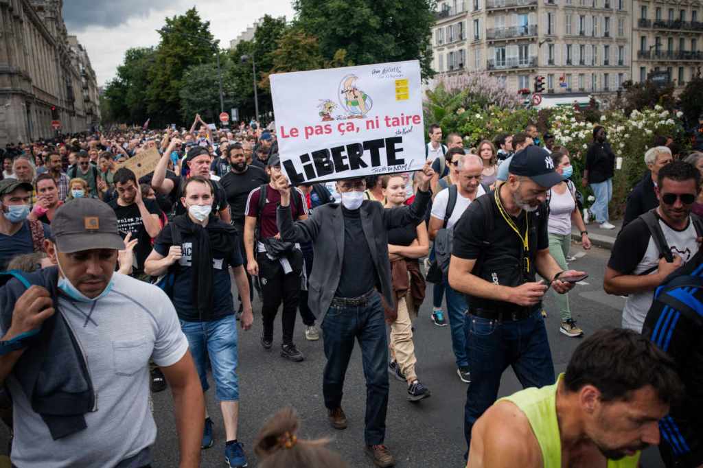 « On est entré en dictature avec Emmanuel Macron », explique ainsi Stéphane Vogel, 50 ans, informaticien, vacciné « sans avoir le choix », venu manifester le 24 juillet dans la capitale, et qui a prévu de revenir le 7 août avec son épouse, anti-vaccin : « C’est la première fois qu’elle manifestera de toute sa vie. »