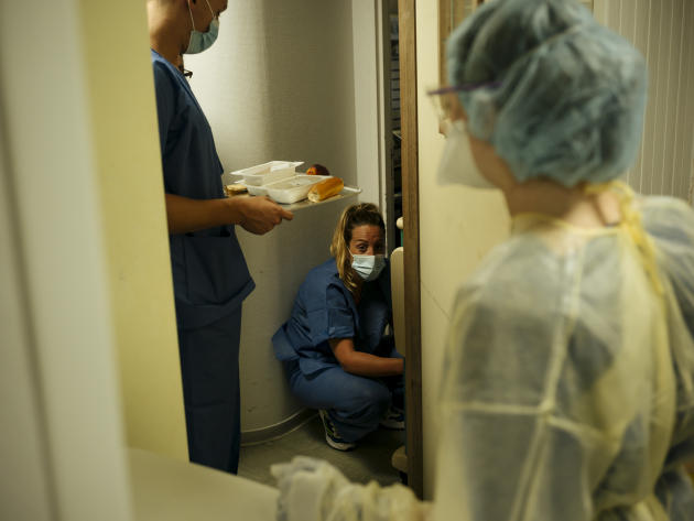 « Selon les agents qui ont connu les trois vagues précédentes – qui avaient, au début, touché la Corse-du-Sud –, ça y est, on est vraiment frappé par le Covid à Bastia. Il y a une grande intensité, que nous n’avions pas rencontrée jusque-là », relève Isabelle Luciani, cadre de santé. Alors que la vague épidémique s’installe, l’épuisement gagne les soignants. « Il y a la fatigue, la chaleur, les blouses qu’on enfile et puis le ras-le-bol, car cela ne finit plus », liste Cindy, confrontée comme ses collègues au quotidien à l’angoisse, à la peur des patients qui « racontent leur histoire » à ces soignants « dont ils ne voient que les yeux ».