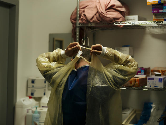 « La quatrième vague a été soudaine et semble partie pour durer », pronostique le docteur Nicolas Mondielli, 32 ans, en charge de l’unité Covid-19 qui accueille alors trente-trois malades. Pour faire face à l’afflux de patients, une aile supplémentaire a été ouverte la semaine dernière. « C’est une pression constante : il y a cinq nouvelles entrées par jour. Nous n’avons jamais atteint ce chiffre et, pour ma part, je n’ai jamais annoncé autant de décès. La semaine dernière, c’était un par jour », souligne le praticien. « C’est psychologiquement très difficile pour les proches du défunt car ils ne peuvent l’accompagner jusqu’au bout », témoigne Cindy (qui n’a pas souhaité donner son nom de famille), aide-soignante depuis onze ans, qui reconnaît avoir versé des larmes dans une chambre avec un patient communiquant au téléphone avec sa fille.
