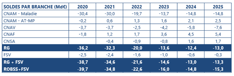 Tableau 1 Solde par branche, 2020-2025
