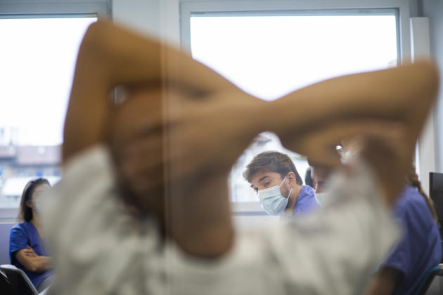 Ce matin-là, Costa Salachas, interne, finit sa tournée de patients accompagné de trois étudiants, qu’il chapeaute. C’est là l’une de ses nombreuses casquettes. Ici comme ailleurs, impossible de faire sans ces jeunes médecins qui ont au moins six ans d’études derrière eux. Leur temps de travail est en principe limité à quarante-huit heures hebdomadaires en moyenne, mais les semaines de cent heures ne sont pas exceptionnelles. « Nous sommes un peu comme des pions. Tantôt on nous voit comme des étudiants, tantôt comme des jeunes médecins », s’agace l’interne de 28 ans.Lire aussi Article réservé à nos abonnésCoronavirus : à l’hôpital, une parenthèse « extraordinaire » se referme