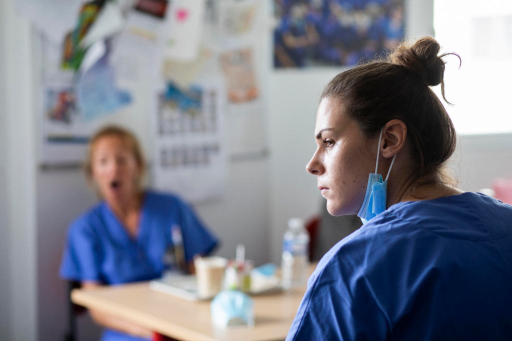 « On nous voyait comme des héros, mais finalement on a été oubliés », soupire Adèle Gimfeld, 29 ans, infirmière, assise dans la salle de repos à l’ambiance « color block » : lino rouge, placard vert et chaises bleues. « Le Covid a achevé ceux qui en avaient déjà marre. » Il y a aussi cette ligne jaune qui fait peur aux soignants, mais qu’ils sont bien obligés de franchir, au mépris de la fatigue et des risques. « Un week-end, une de mes collègues était seule pour quatorze patients ! On lui a répondu : “Vous allez y arriver, et préparez-vous, car il va y avoir deux autres entrées”. »