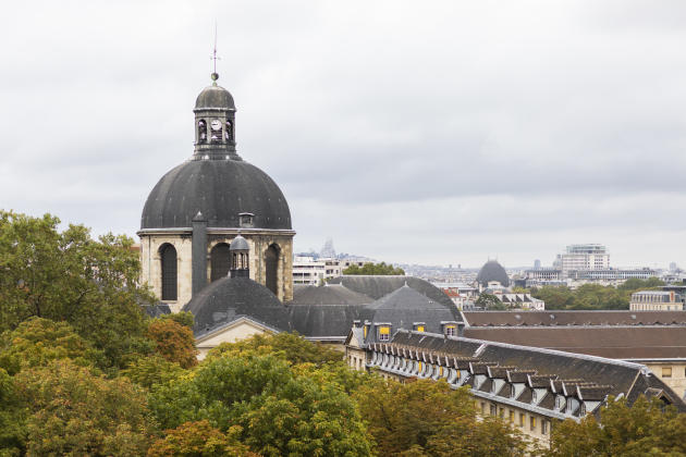 En cette fin d’après-midi de septembre, un arc-en-ciel s’étire dans le ciel orageux, au-dessus des toits gris de Paris. Depuis la terrasse du bâtiment Eole, inauguré il y a deux ans, l’hôpital de la Pitié-Salpêtrière a des airs de carte postale. Des jardins arborés d’où émergent le dôme d’une magnifique chapelle, des édifices classés du XVIIe siècle et, à l’horizon, le Sacré-Cœur et le Panthéon. Depuis ce vaisseau amiral de la médecine française, on aperçoit aussi les livres ouverts de la bibliothèque François-Mitterrand et les nouvelles tours Duo, de l’architecte Jean Nouvel, qui dominent le 13e arrondissement.
