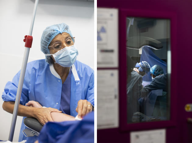 Changement de décor au bâtiment de la chirurgie ambulatoire, tout en verre, inauguré en 2018. Ici, c’est « la vitrine où tout va bien », plaisantent les infirmières. Reconverti en service de réanimation pendant la première vague du Covid-19, il a depuis quasiment repris son rythme de croisière. Les patients défilent avec une heure de convocation précise, repartent chez eux dans la journée. La chirurgie fait partie des rares activités bankable à l’hôpital. Chaque jour, le planning est optimisé pour ne pas perdre une heure de bloc.