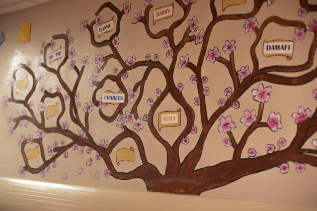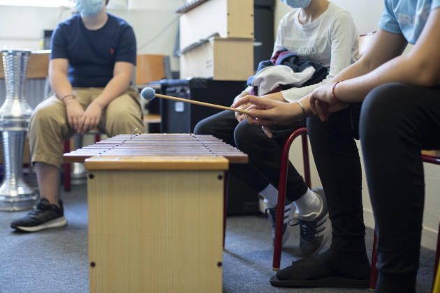 Pour faciliter leur retour dans la société, une école a été aménagée dans l’enceinte de l’hôpital. Quelques notes de xylophone et de guitare s’échappent de la salle de musique, puis la voix claire d’un enfant qui répète une chanson. Dans la salle de classe voisine, Anne-Laure Bourdaud tend une poignée de crayons de couleur à quatre enfants en leur demandant de les classer par taille. « Un exercice de niveau grande section de maternelle pour des élèves qui devraient être scolarisés en cours élémentaire », explique la maîtresse.