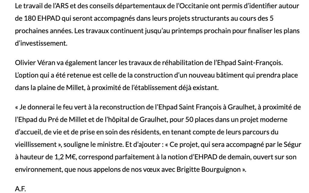 Et d’assurer que dès le mois de janvier prochain, les personnels verraient leur salaire augmenter. Le ministre a également donné son feu vert à la reconstruction de l’Ehpad Saint-François, à proximité de l’Ehpad du Pré de Millet et de l’hôpital. Un projet qui sera accompagné par le Ségur à hauteur de 1,2 million d’euros.