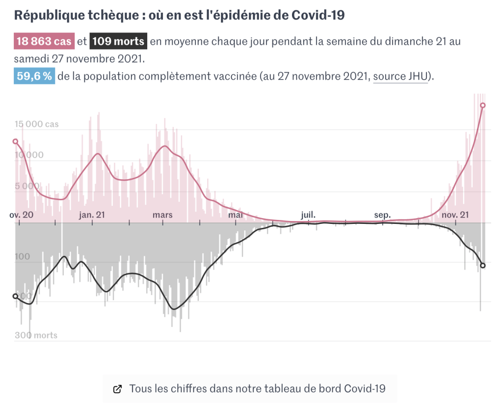 Avec plus de 10 000 cas quotidiens en moyenne, la République tchèque a annoncé que seules les personnes vaccinées pourraient désormais se rendre dans les bars, restaurants ou autres lieux de rassemblement.