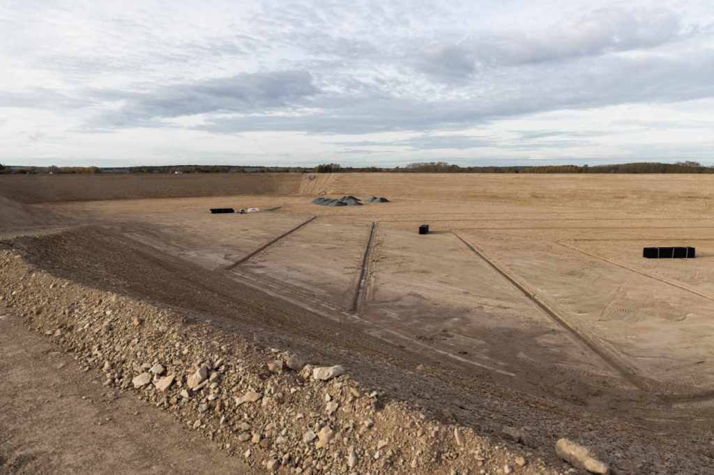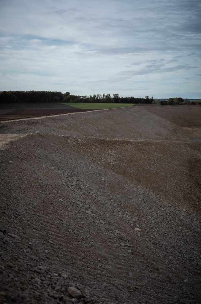 Le chantier de la retenue de Mauzé-sur-le-Mignon est désormais mieux protégé. De puissants projecteurs l’éclairent jour et nuit. Un garde, abrité dans un camping-car, veille sur les lieux et filtre les va-et-vient. Derrière les grillages, les pelleteuses ont creusé une sorte de très grand stade. « Plutôt le Camp Nou de Barcelone que le stade municipal de Mauzé », sourit Thierry Boudaud, président de la Coop de l’eau, qui conduit la visite des lieux, « une retenue de taille moyenne ». Soit 7 hectares d’emprise sur des terres agricoles cédées par leurs propriétaires pour conserver 245 000 mètres cubes d’eau. Avant sa mise en service, cet hiver si tout va bien, il restera à lisser les bords du cratère avec un broyeur, avant de poser une géomembrane qui assurera son étanchéité. Quatre points de remplissage devraient être actifs chaque année entre le 30 novembre et le 30 mars, « à condition que la nappe phréatique soit pleine ou en débordement ». L’été venu, huit « irrigants » bénéficieront directement de ces eaux.