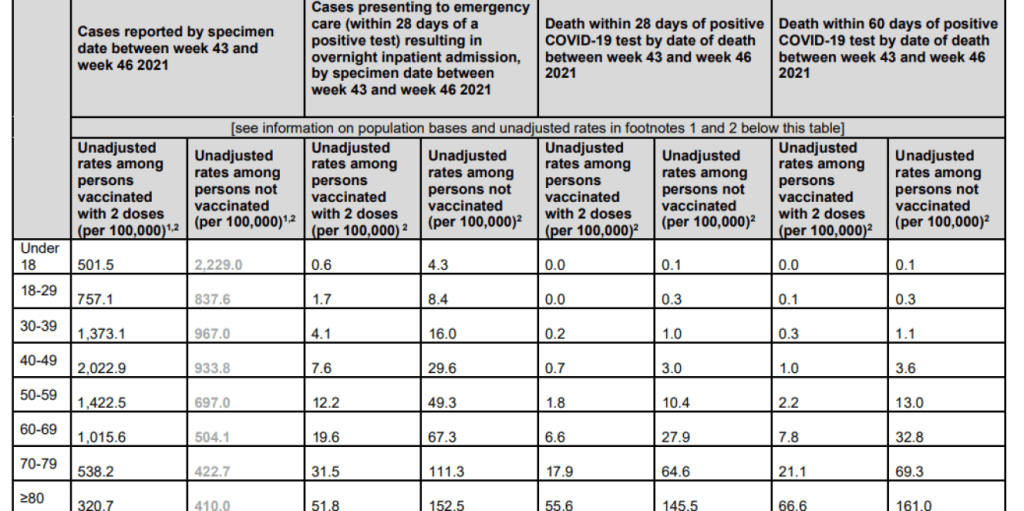 Pour connaître le nombre de morts parmi la population vaccinée, l’agence gouvernementale UK Health Security Agency communique un bulletin hebdomadaire de surveillance sur l’efficacité des vaccins. Le plus récent, publié le 25 novembre, rapporte les décès survenus « au cours des vingt-huit jours suivant un test au Covid-19 positif ». L’agence a ainsi dénombré 708 décès chez les personnes non vaccinées, contre 2 903 décès chez les personnes vaccinées depuis le début du mois de novembre, soit quatre fois plus décès chez les Britanniques immunisés.