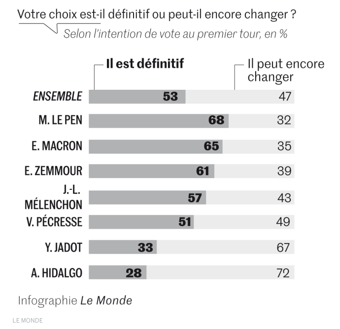 Election présidentielle 2022 : un scrutin plus que jamais imprévisible, selon la troisième enquête électorale publiée par « Le Monde »