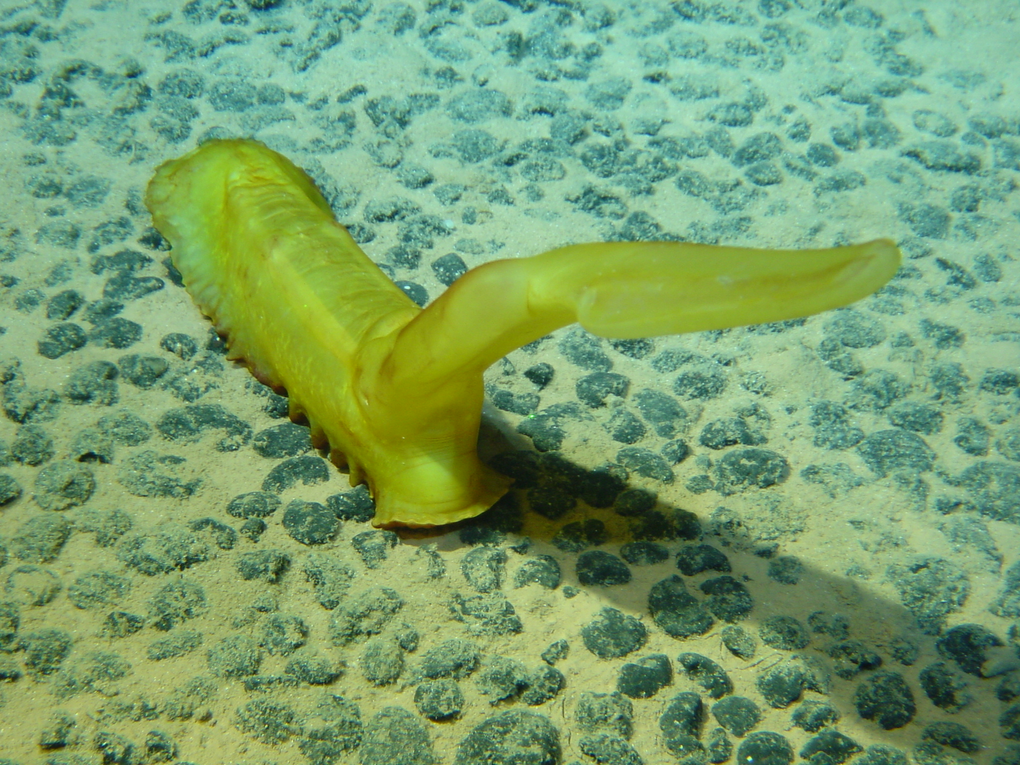 Comcombre de mer dans un champ de nodules @Ifremer, Nodinaut (2004).