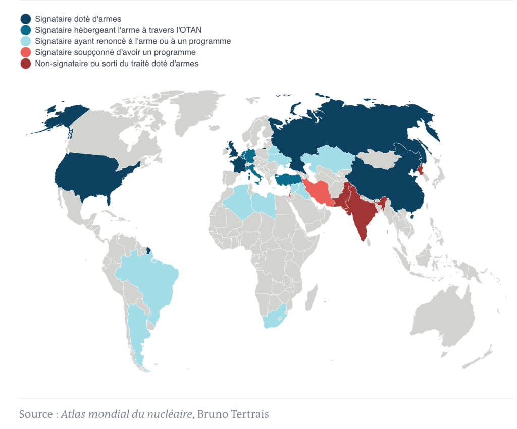 Progressivement, la quasi-totalité des pays y ont adhéré, à l’exception de l’Inde, d’Israël, du Pakistan et du Soudan du Sud. La Corée du Nord s’en est retirée en 2003, et certains signataires, comme l’Iran ou la Birmanie, ont été soupçonnés de développer des programmes nucléaires clandestins.