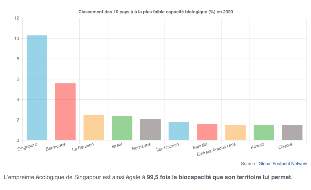 Si la biocapacité d’un pays est inférieure à son empreinte carbone, alors ce pays sera considéré comme étant en déficit écologique.