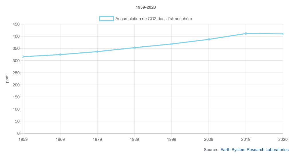 En 2020, les émissions mondiales de CO2 dans l’atmosphère ont atteint les 32 milliards de tonnes de CO2, un record qui risque d’être rapidement dépassé puisque les trajectoires prévues ne prévoit aucune baisse.