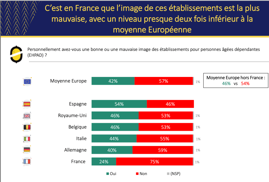 3) Avec l’affaire ORPEA, le grand âge et la dépendance s’impose comme un sujet majeur d’angoisse pour les Français (65% sont inquiets pour leur propre vieillissement) sur fond d’image très dégradée des EHPAD (75% en ont une mauvaise image).