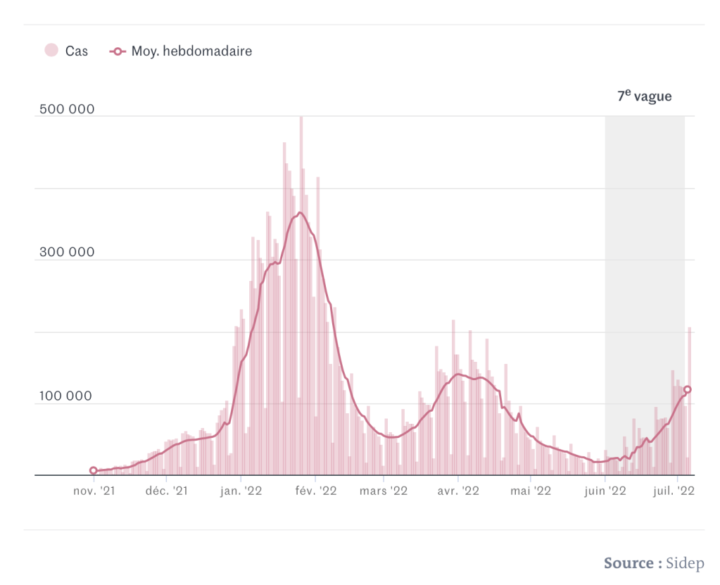 Avec une augmentation rapide et constante des cas de Covid-19, le pays est entré dans la septième vague d’épidémie due au coronavirus. Variant en circulation, état de la vaccination, situation à l’hôpital… Voici les points-clés.