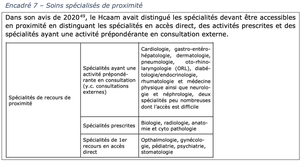 49 Organiser la médecine spécialisée et le second recours : une pièce essentielle de la transformation de notre système de santé, Avis du Hcaam, 2020