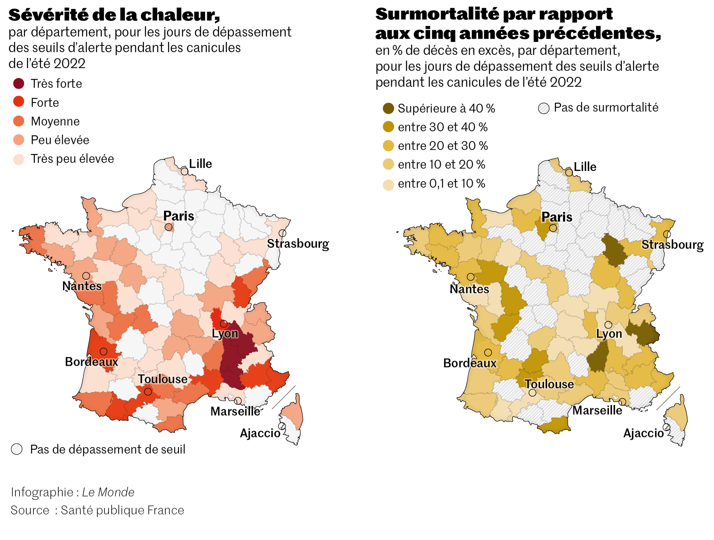 Une part de la surmortalité est « vraisemblablement due à une exposition à de fortes chaleurs », sous « les seuils d’alerte canicule ». Il faudra attendre début 2023 pour avoir une estimation de son ampleur.
