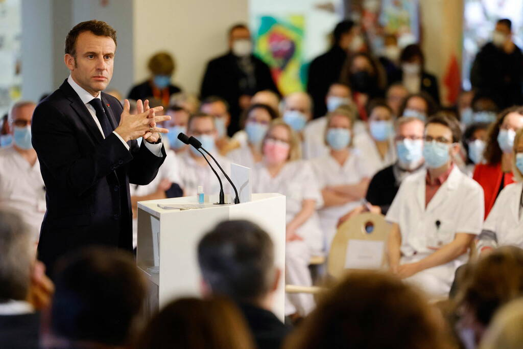 Emmanuel Macron au Centre hospitalier Sud Francilien à Corbeil-Essonnes, le 6 janvier. (Ludovic Marin /AFP)