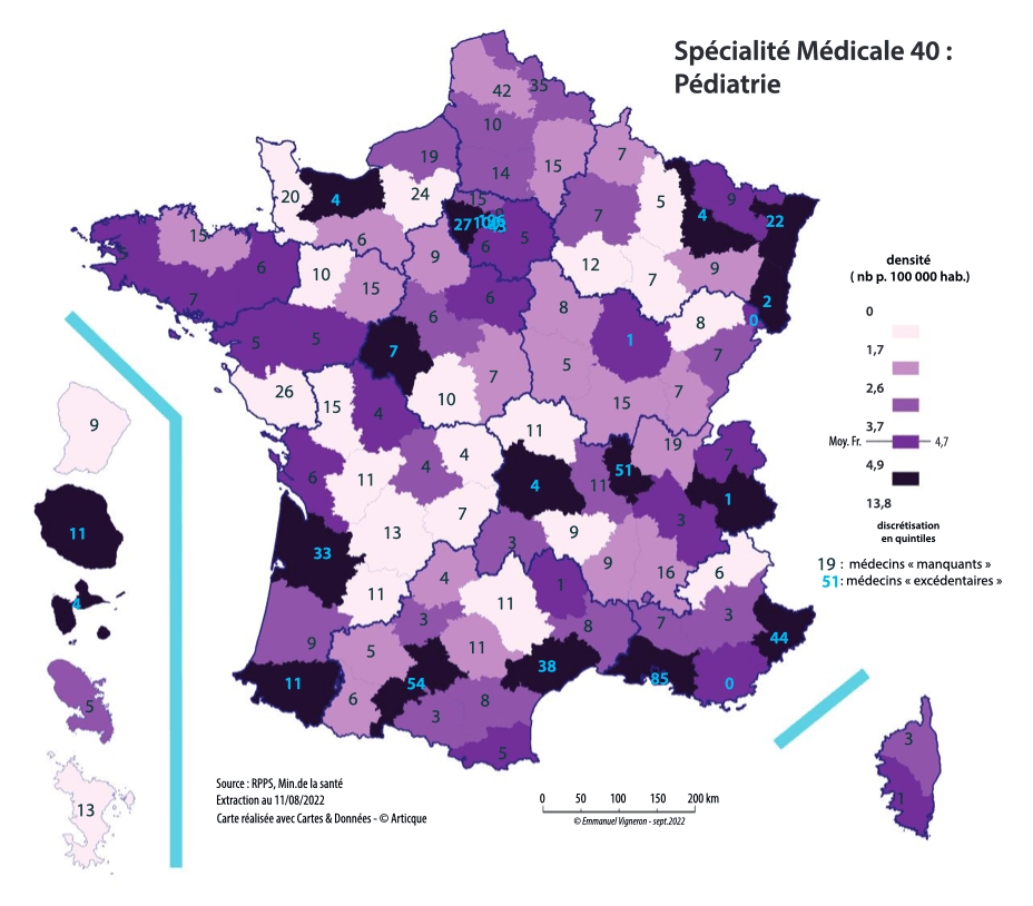 Cartographie de la répartition des pédiatres. – Association des maires ruraux de France