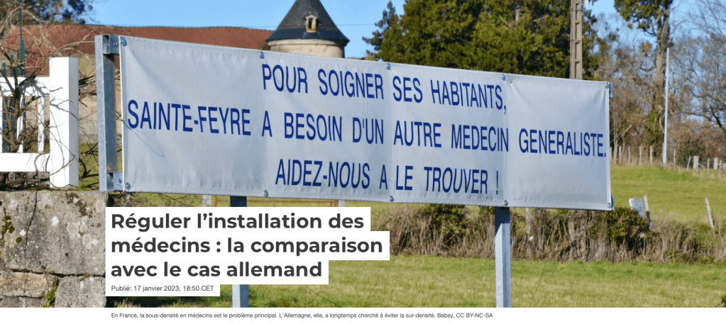 Par conséquent, un médecin s’installant dans la campagne allemande ne se sent pas (automatiquement) éloigné d’un certain nombre de services publics, culturels, etc. Cela renvoie à l’idée, dans le débat en France, que les « déserts médicaux » sont aussi, en partie, des « déserts de service public et privé ».
