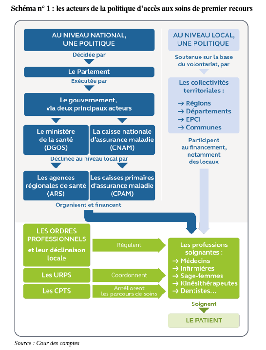 Pour la Cour des comptes, ces « difficultés doivent être prises en considération même si leurs manifestations ne concernent souvent qu’un ‘segment’ d’accès aux soins : tantôt la difficulté, voire l’impossibilité, de trouver un médecin de garde, la nuit ou le week-end, ou encore d’obtenir un rendez-vous chez un médecin généraliste pour des soins non programmés, ‘de petite urgence’ ; tantôt la faible disponibilité pour des visites à domicile ou la difficulté à obtenir un rendez-vous auprès d’un médecin qui n’est pas le médecin traitant ». D’autant que pour les élus…