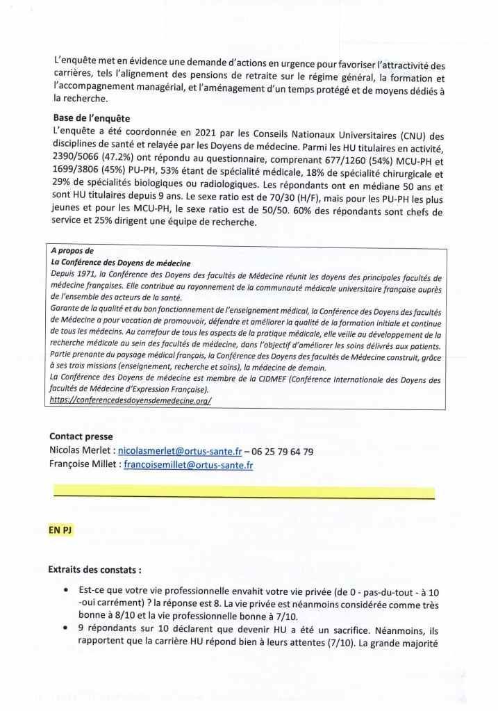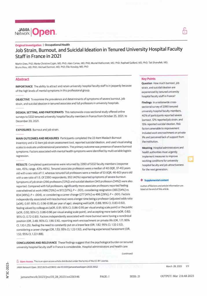 La commission Hospitalo-Universitaire et le bureau d’Action Praticiens Hôpital souscrivent entièrement aux conclusions de l’enquête menée par les CNU et publiée dans le JAMA Open Network ce 28 mars 2023.