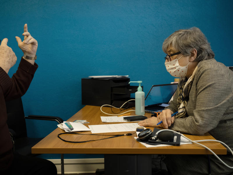 La docteure Bénédicte Moreau, 67 ans, en consultation au cabinet médical de l’hôpital d’Avesnes-sur-Helpe (Nord), le 1er mars 2023. AIMÉE THIRION POUR « LE MONDE »
