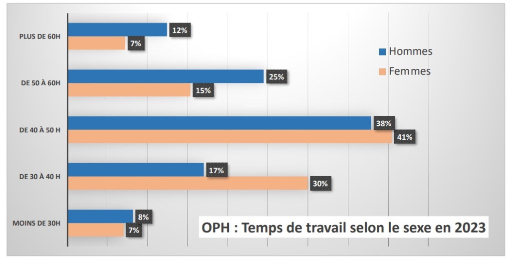 Répartition du temps de travail selon le sexe en 2023. Source : SNOF