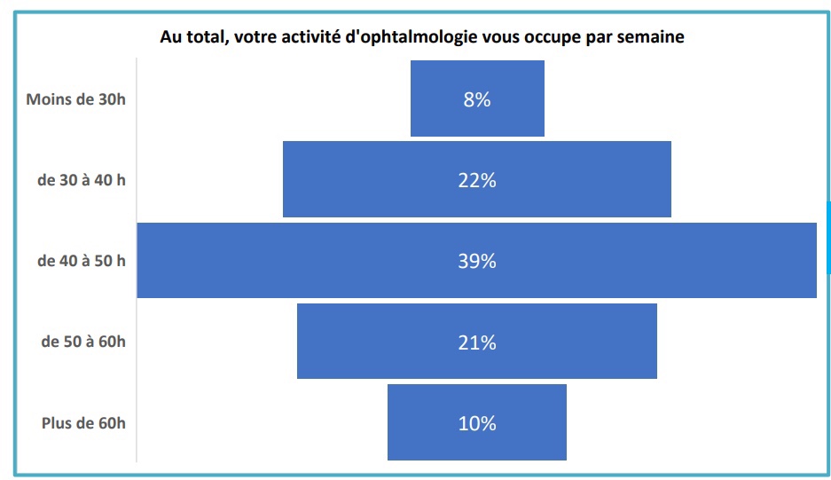 Temps de travail des ophtalmologistes par tranches horaires de 10H. Source : SNOF