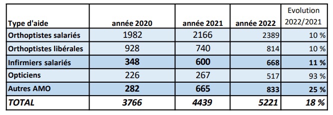 Le travail aidé s’est généralisé en 2022 à partir des cabinets de 4 ophtalmologistes. « L’augmentation se fait à la fois par l’arrivée de nouveaux ophtalmologistes qui sont en travail aidé mais aussi par le renforcement des équipes déjà constituées. » A noter toutefois que la proportion des cabinets de groupe tend à s’accroître, les jeunes médecins plébiscitant ce mode d’exercice.