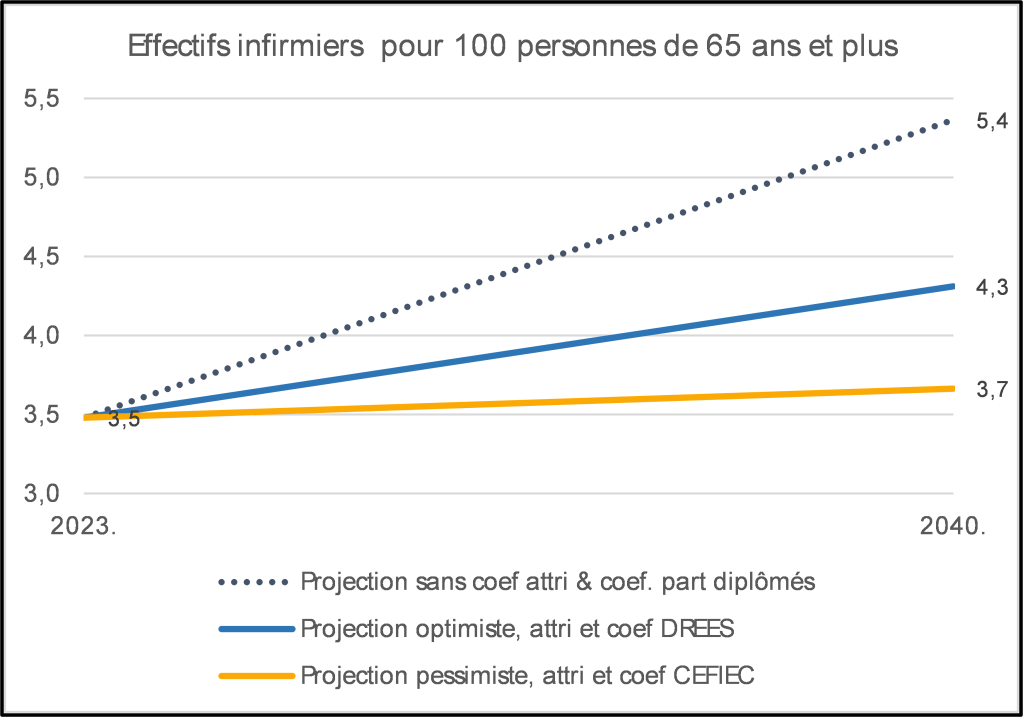Projection sur les effectifs infirmiers pour 100 personnes âgées de 65 ans et plus